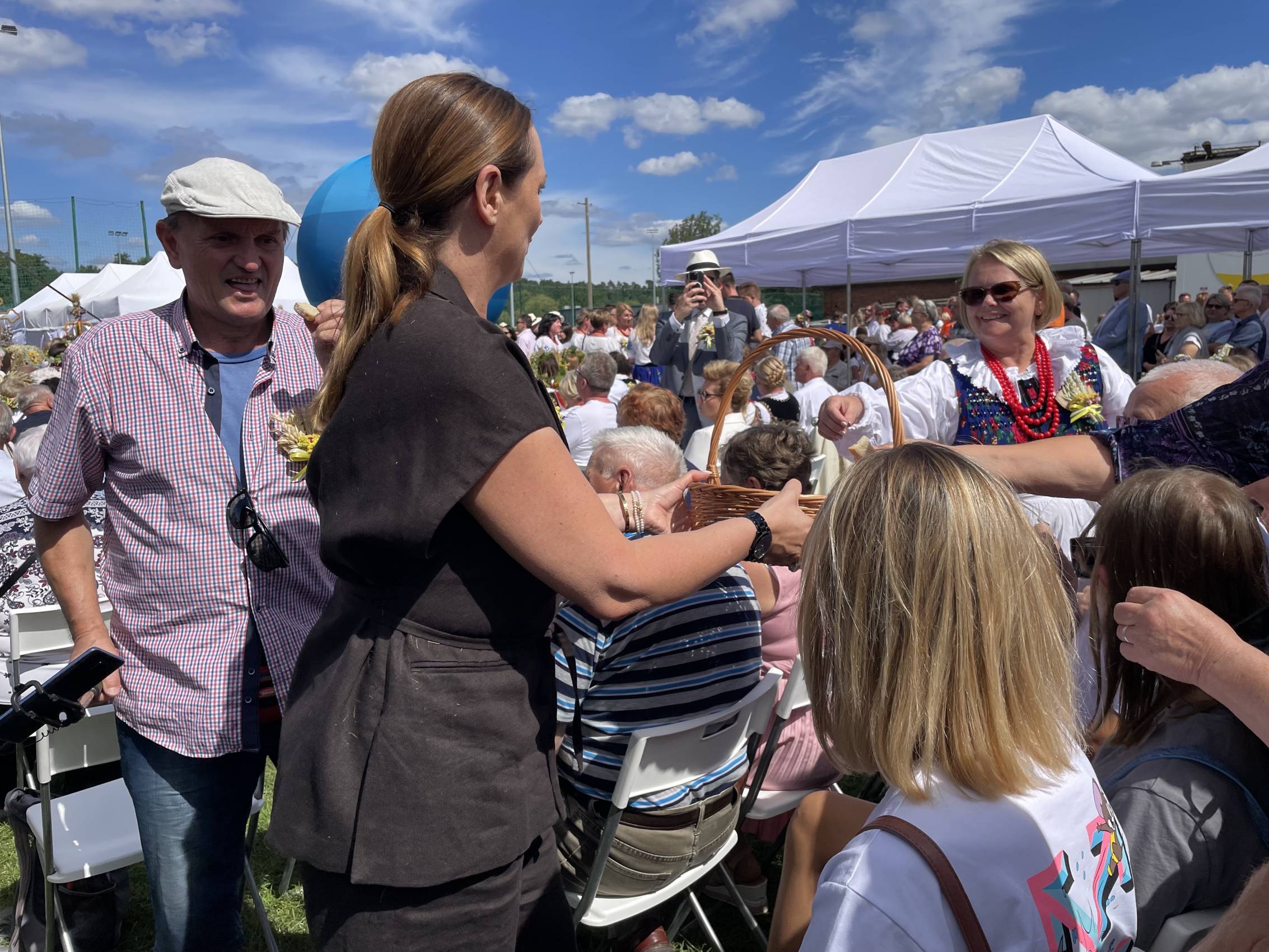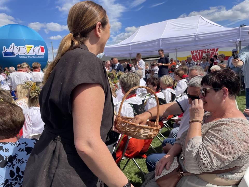 Zapewniła również o wsparciu dla obszarów wiejskich – w tym roku sołectwa z woj. łódzkiego otrzymały rekordowe 40 mln zł m.in. na świetlice i miejsca integracji. Część obrzędową rozpoczął Zespół Śpiewaczy „Sędziejowianki", a następnie starostowie dożynek – Agnieszka Węglewska i Paweł Michalak – przekazali na ręce marszałek bochen chleba upieczony z tegorocznych zbóż.