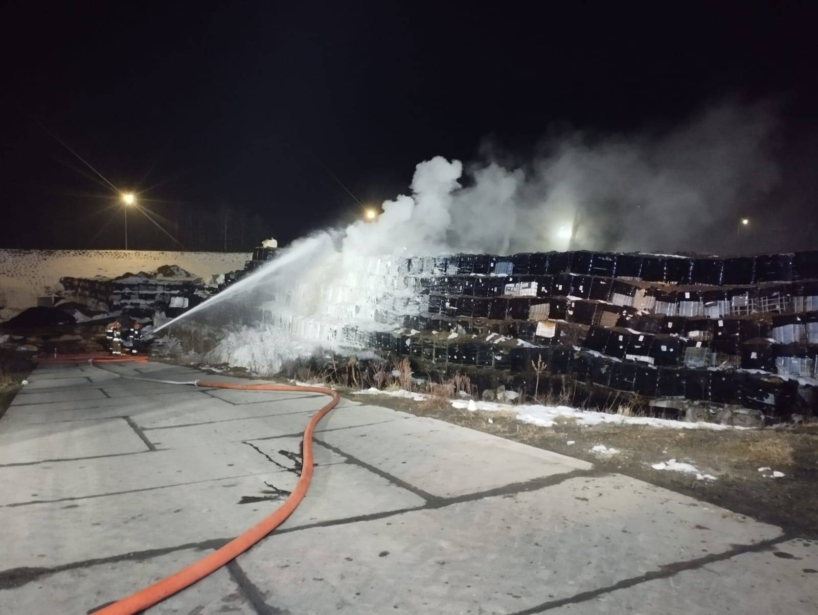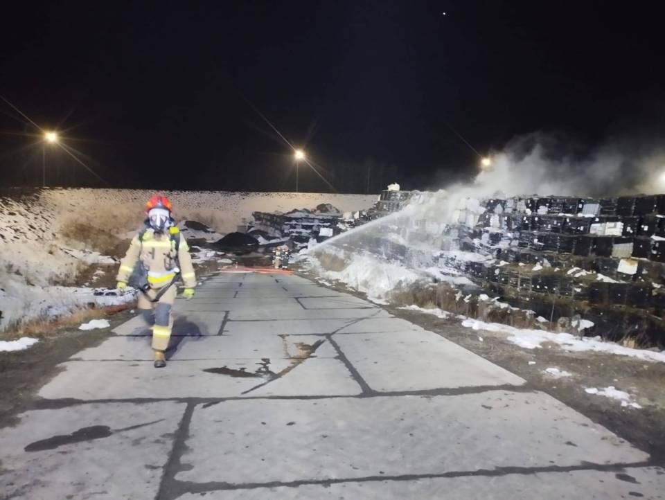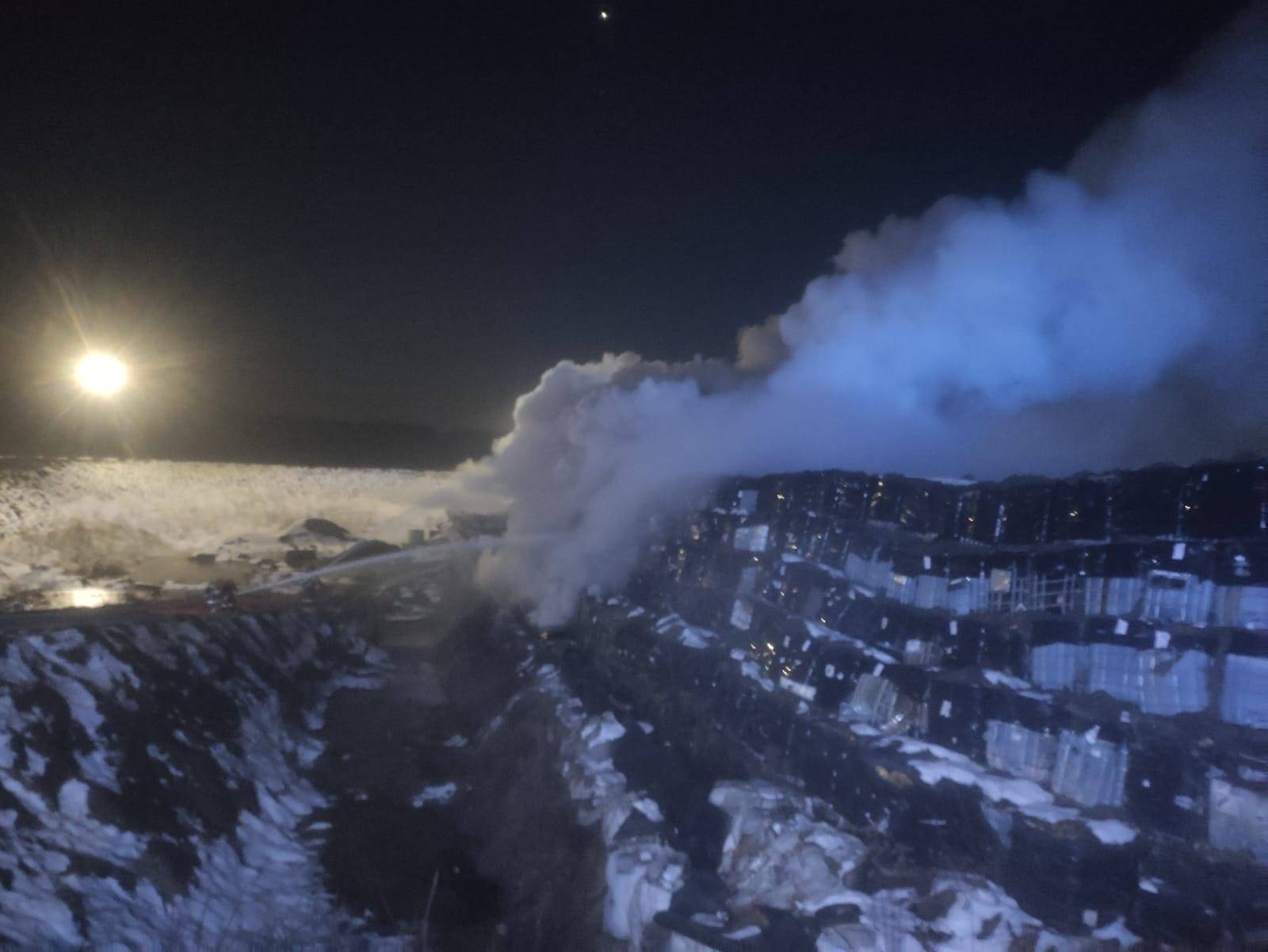 Duży pożar na składowisku w powiecie radomszczańskim. Płonie hałda ze zbiornikami typu "mauser". Na miejscu pracuje kilkanaście zastępów straży pożarnej, specjalistyczna grupa chemiczno - ekologiczna i dronowa. Jak przekazuję PSP w Radomsku trwa walka o to, by ogień nie rozprzestrzenił się na kolejne fragmenty składowiska.
