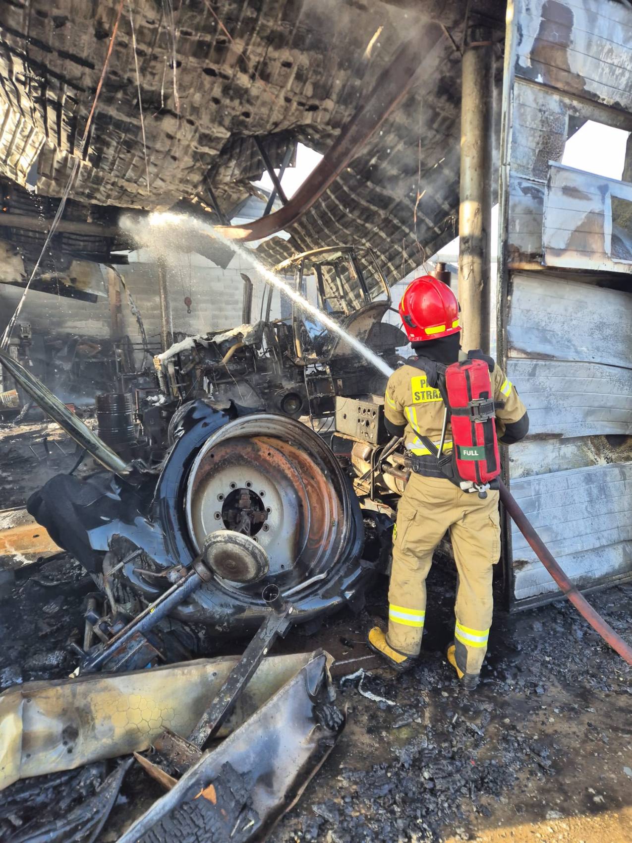 Po dojeździe pierwszych zastępów na miejsce strażacy zastali w pełni rozwinięty pożar części warsztatowej obiektu. Sytuacja była bardzo dynamiczna i wymagała natychmiastowych działań ratowniczych.