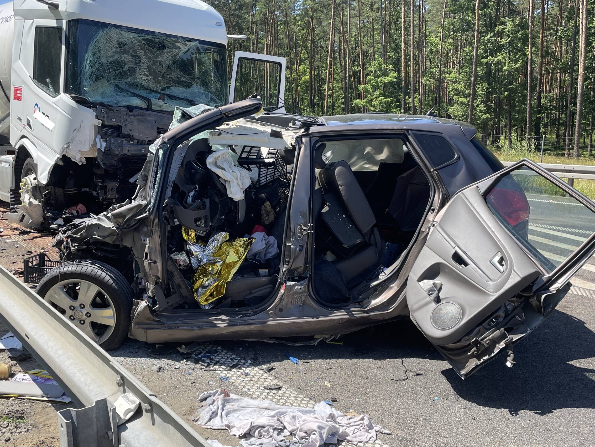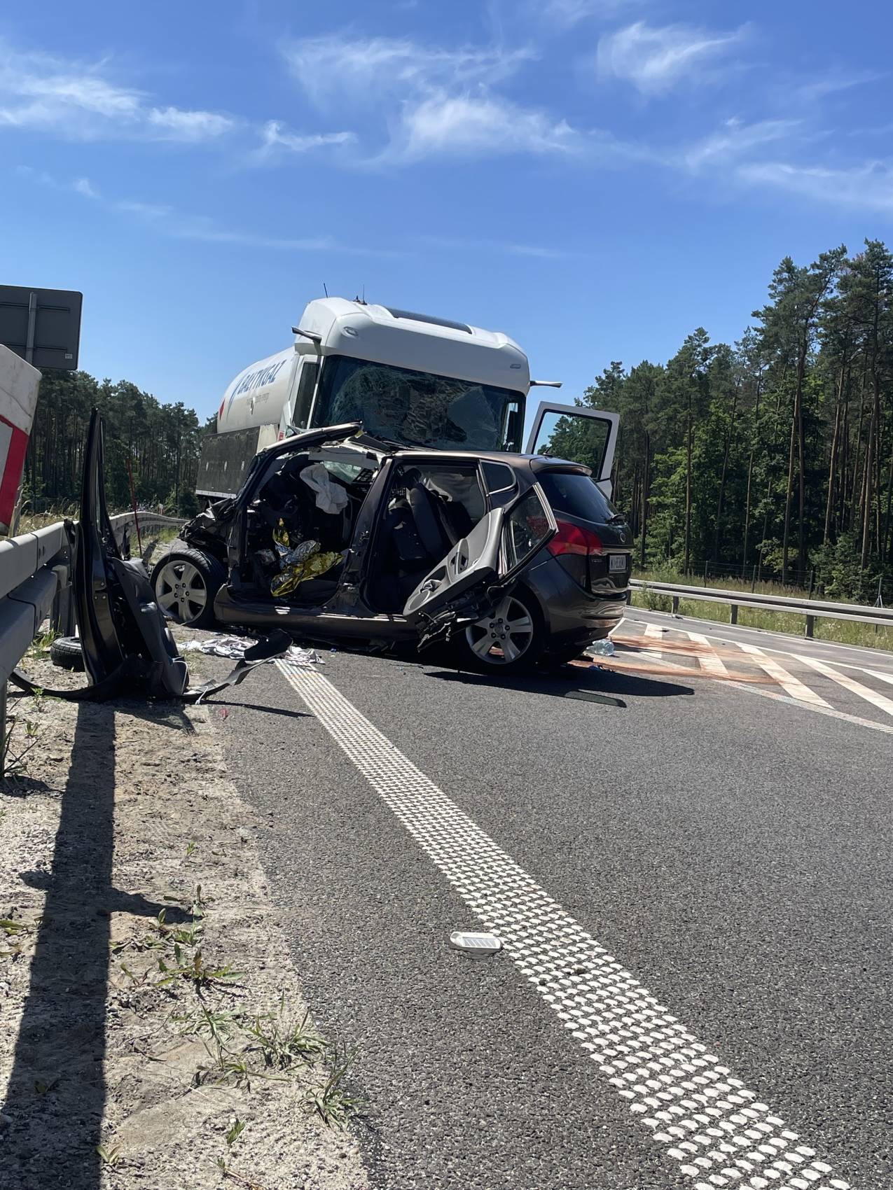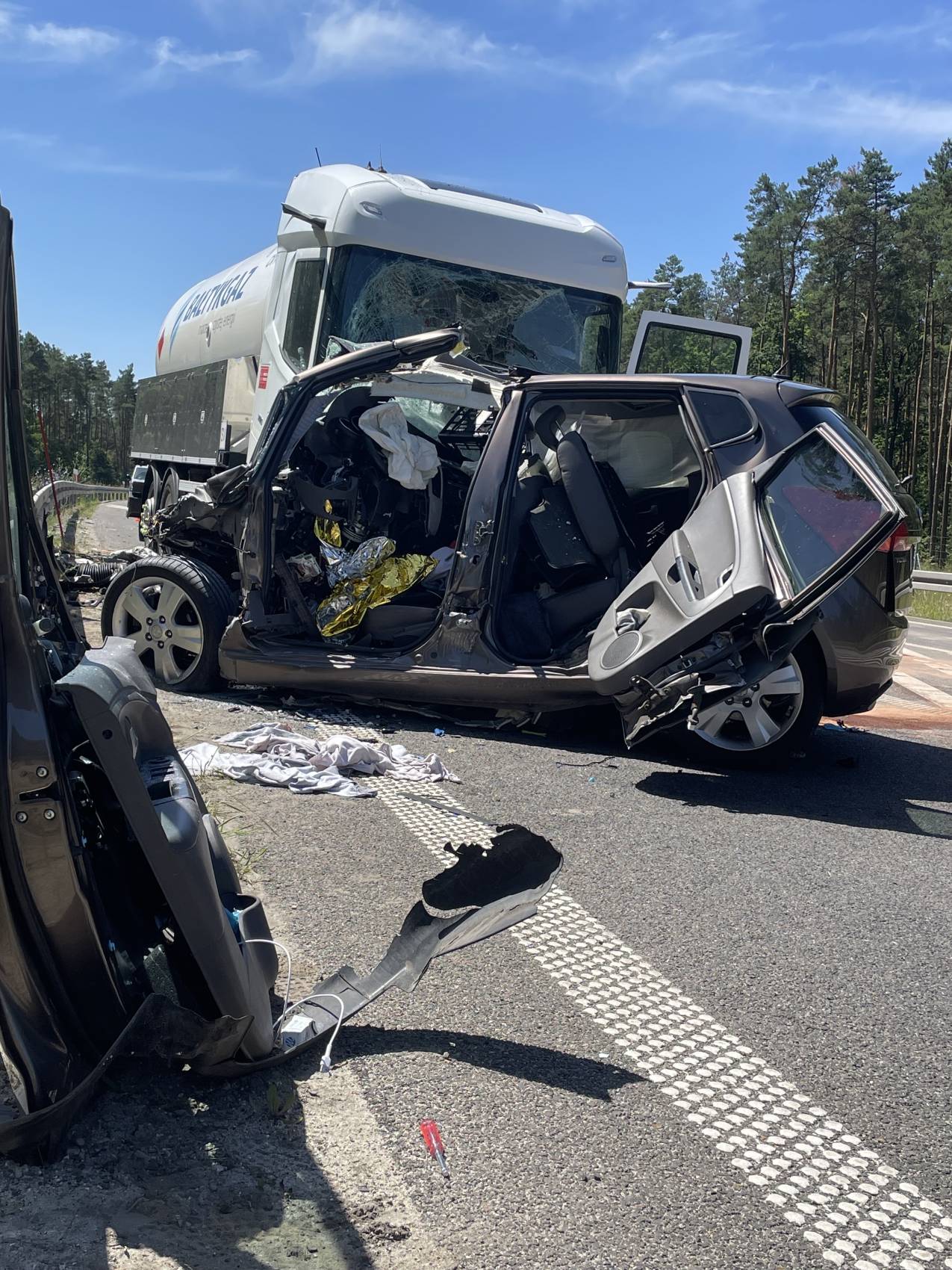 Do zdarzenia doszło w poniedziałek, 30 czerwca tuż przed godziną 10.00 rano. Wstępnie wszystko wskazuje na to, że kierujący samochodem osobowym Kia, zjechał na przeciwległy pas ruchu, wówczas doszło do czołowego zderzenia z ciągnikiem siodłowym przewożącym ładunek gazu.