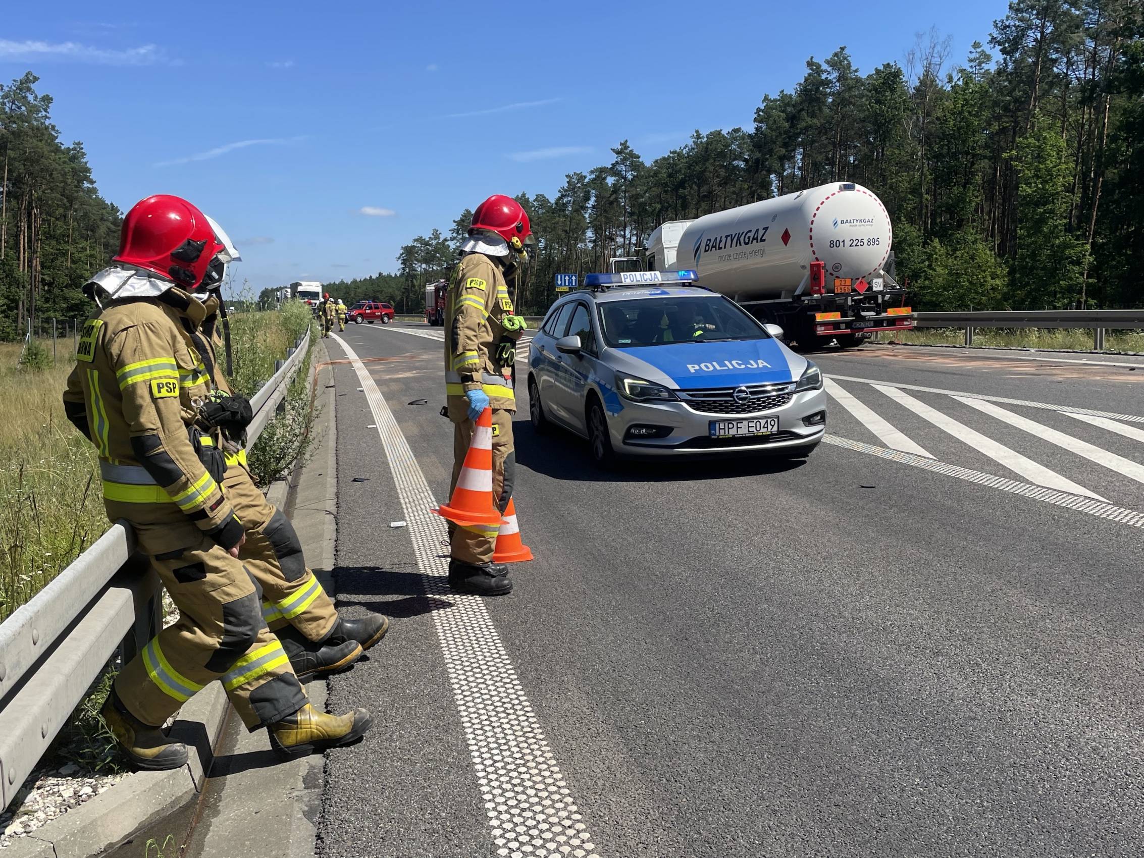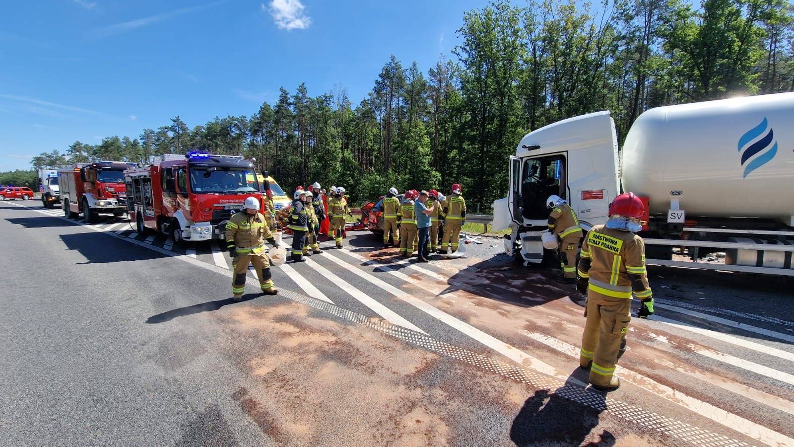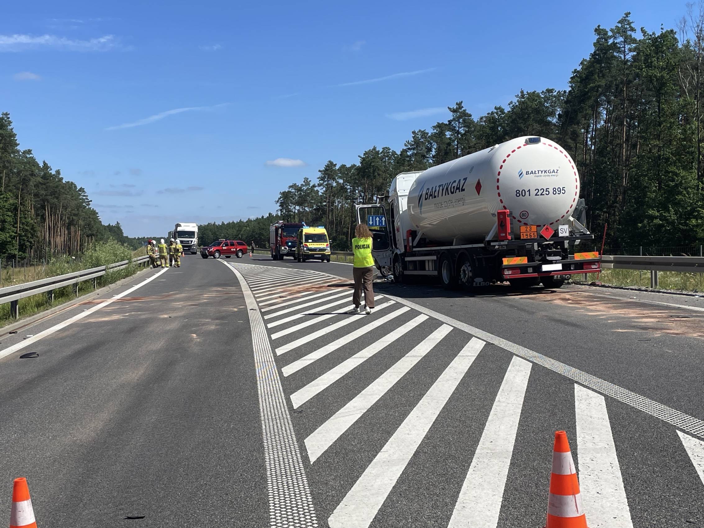 Droga jest nieprzejezdna i tak może być przez najbliższe godziny. Niezbędnym do udrożnienia trasy jest bowiem przepompowanie ładunku gazu do innego pojazdu i usunięcie pojazdów z jezdni. W tej chwili służby czekają na podstawienie kolejnej cysterny.