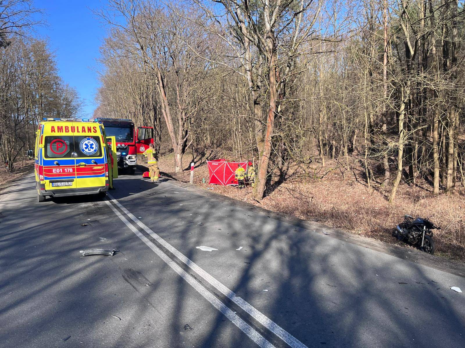 Ofiarą śmiertelną wypadku jest motocyklista. Mężczyzna został przekazany zespołowi ratownictwa medycznego, ale niestety nie udało się go uratować – mówi bryg. Jędrzej Pawlak, rzecznik prasowy KW PSP w Łodzi.