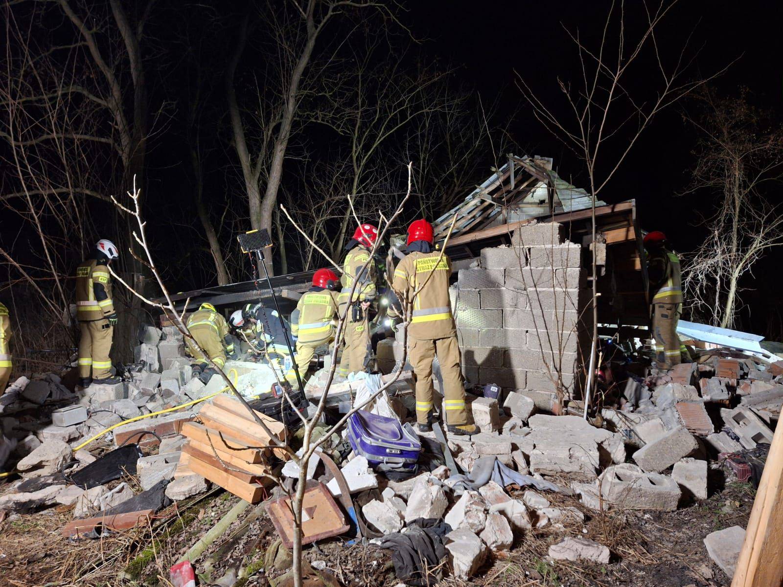 Na miejsce natychmiast skierowano liczne siły i środki ratownicze. W działaniach uczestniczy pięć zastępów Państwowej Straży Pożarnej, dwa zastępy Ochotniczej Straży Pożarnej oraz Specjalistyczna Grupa Poszukiwawczo-Ratownicza z Łodzi. W trakcie prowadzonych działań strażacy wydobyli z gruzowiska opaloną butlę z gazem.